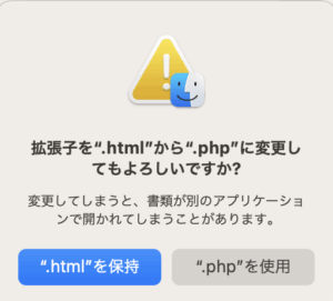 このようなポップアップが表示されたら”.php”を使用を選択!
